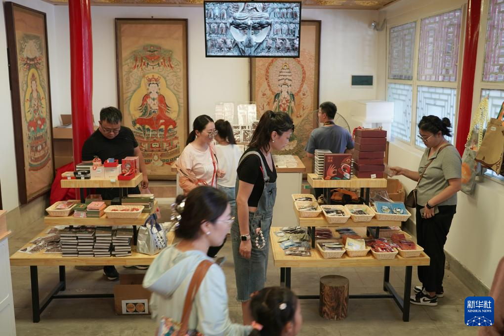 9月16日,游客在陕西西安蓝田县水陆庵内选购文创产品。