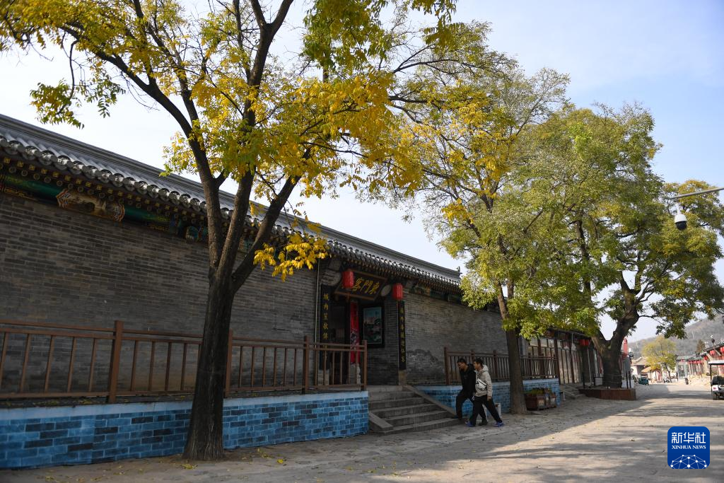 人们走在北京市延庆区八达岭镇的岔道古城(11月1日摄)。