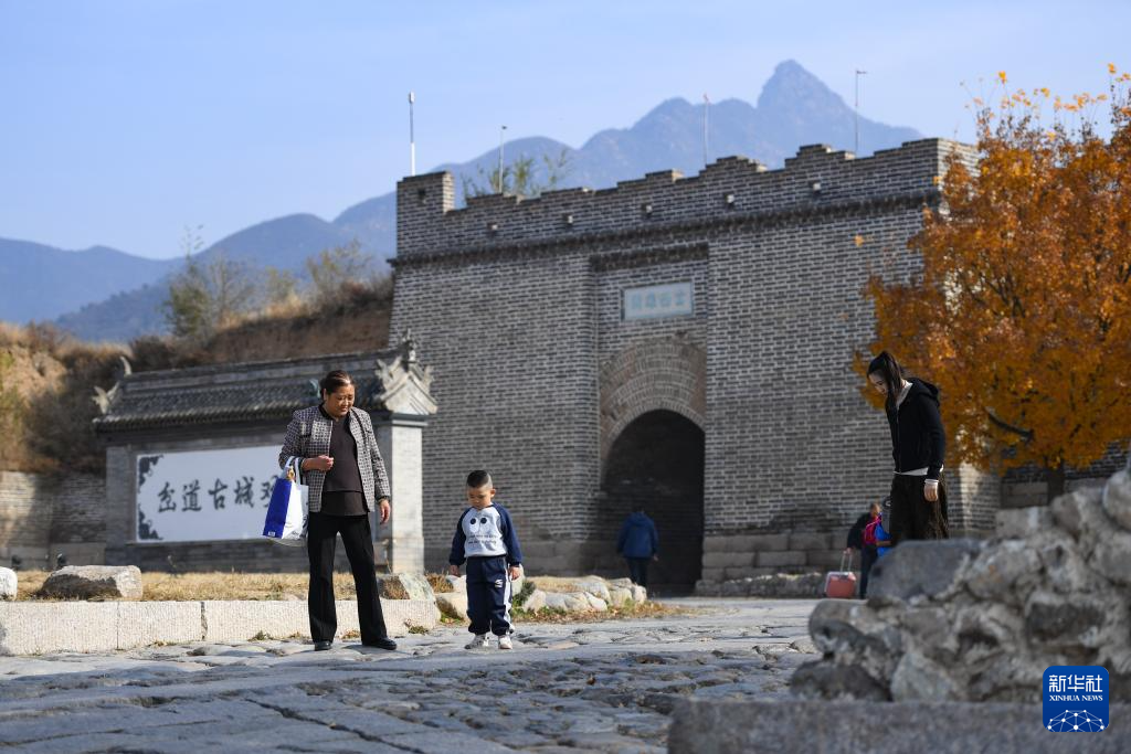 游客在北京市怀柔区慕田峪长城脚下的渤海镇北沟村游玩(10月29日摄)。