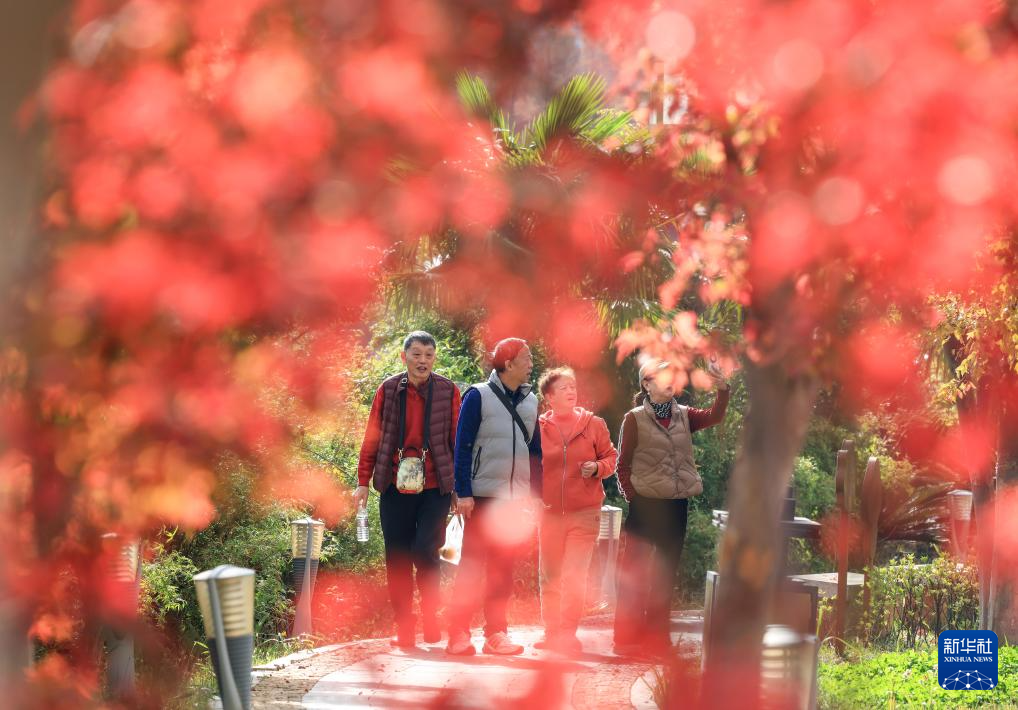 11月12日,游客在云南省曲靖市沾益区西河公园赏景游玩。