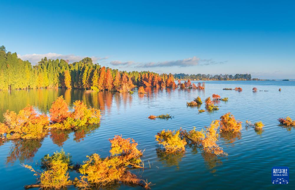 11月13日拍摄的云南晋宁市的南滇池国家湿地公园(无人机照片)。