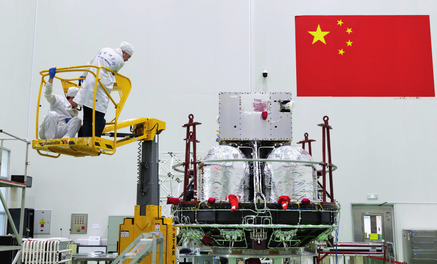 在位于上海的中国科学院微小卫星创新研究院总装厂房,科研人员对“微笑”卫星进行最后的检查(2024年11月4日摄)金立旺摄/本刊