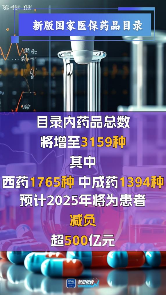 新版国家医保药品目录将于2025年1月1日起实施。叠加谈判降价和医保报销因素,预计2025年将为患者减负超500亿元。