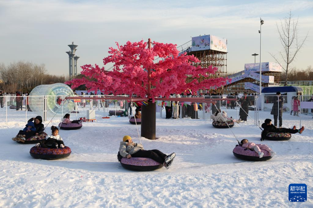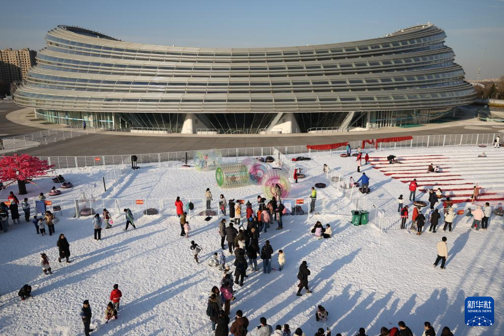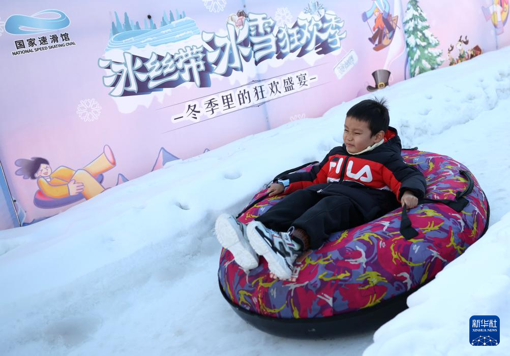 1月4日,游客在国家速滑馆“冰丝带冰雪狂欢季”活动中体验雪上游乐项目。