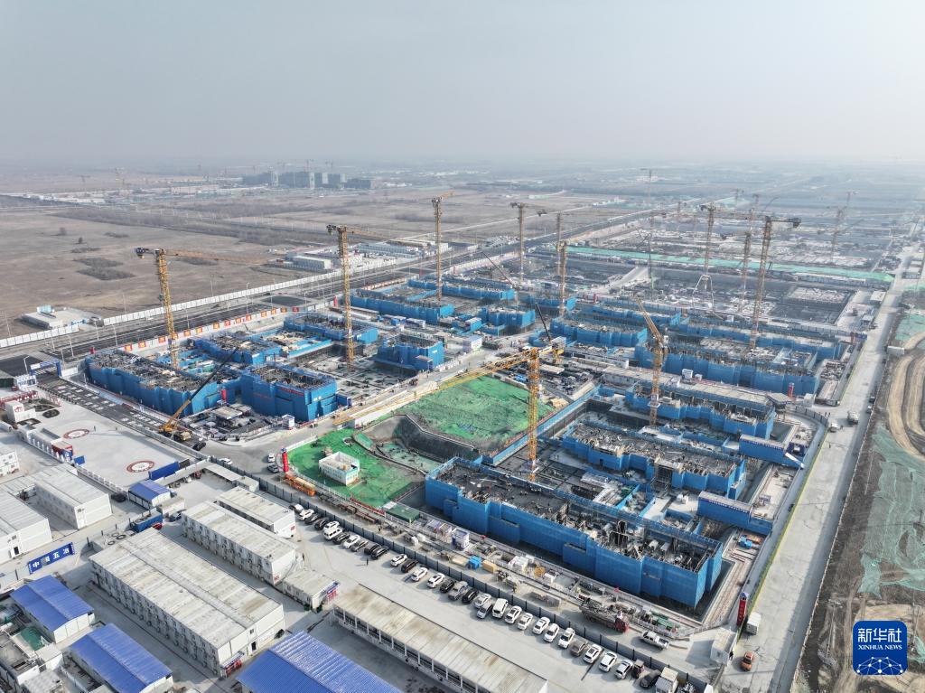 早春时节,河北雄安新区多处建设工地塔吊林立、机器轰鸣、车辆穿梭,数以万计的建设者以高标准高质量推进项目建设,呈现出一派热火朝天的繁忙景象。