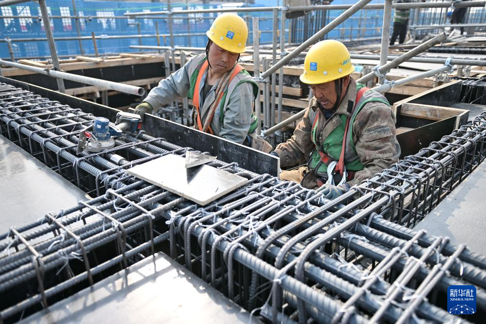 2月27日,中建三局工人在中国矿产资源集团有限公司雄安总部项目建设现场施工。