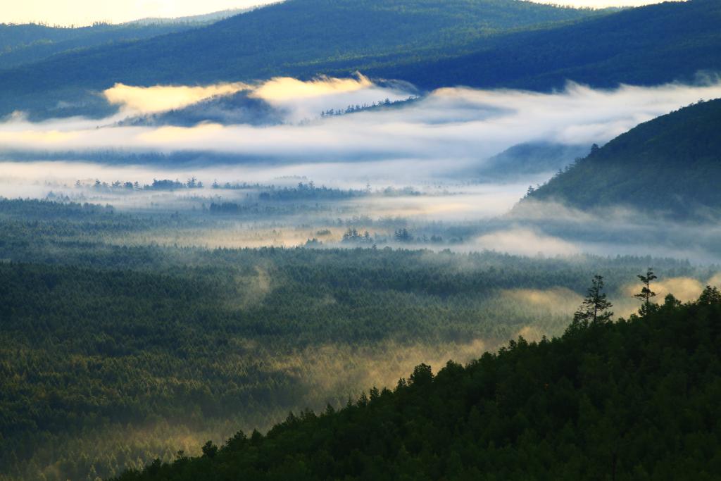 这是在内蒙古额尔古纳国家级自然保护区拍摄的云雾林海风光。(内蒙古森工集团供图)