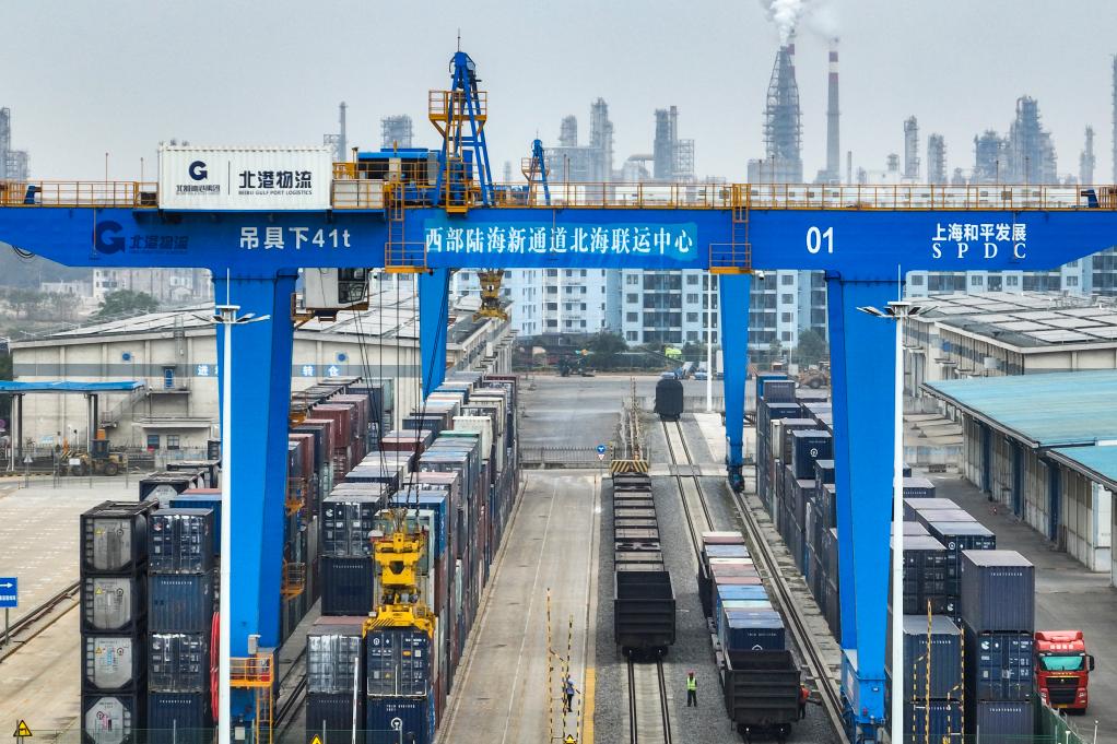 这是位于广西北海市铁山港区的西部陆海新通道北海联运中心(3月13日摄)。