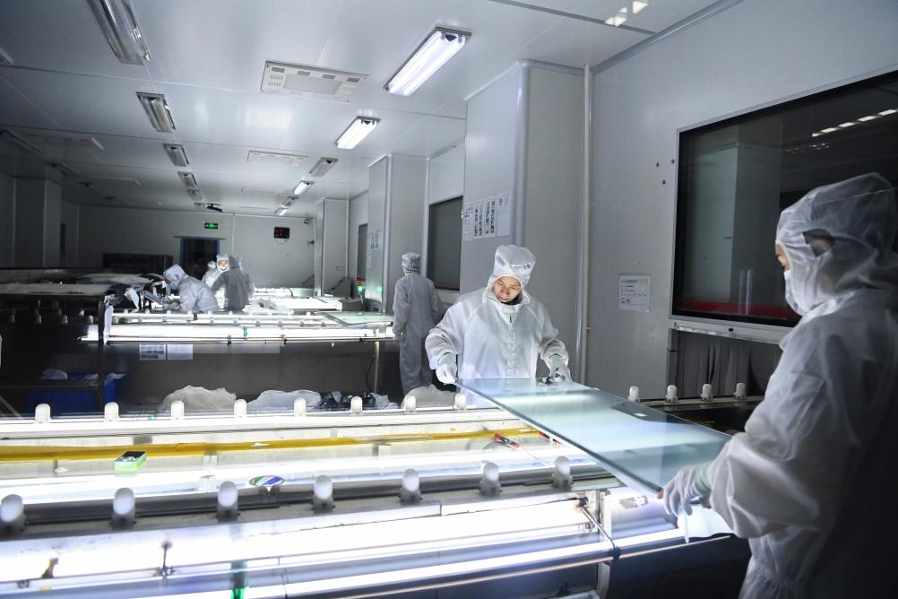 在位于广西北海市铁山港(临海)工业区内的一家玻璃生产企业,工作人员对成品汽车玻璃进行质检(3月13日摄)。