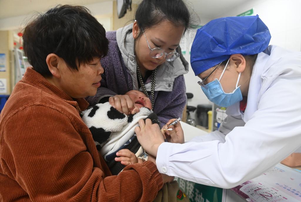2月11日,在广西南宁市青秀区长虹社区卫生服务中心,医务人员为市民接种流感疫苗。新华社记者 陆波岸 摄