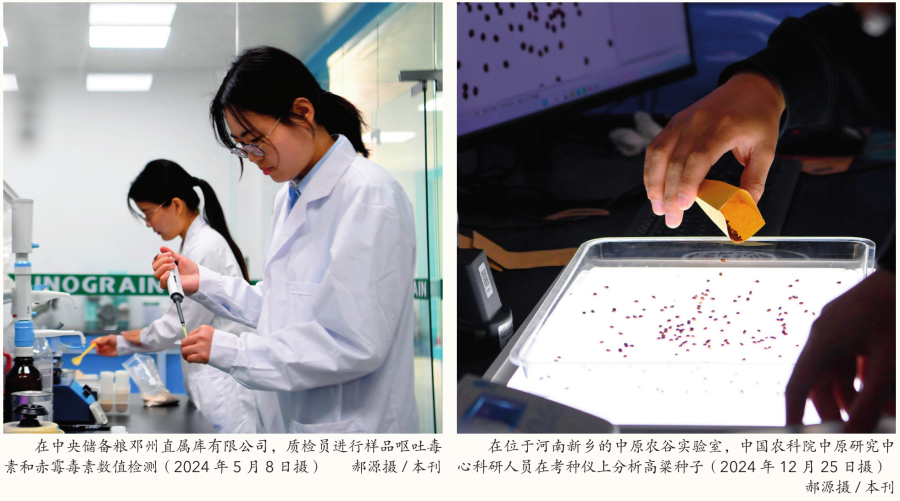 一望无际的麦田里,农民正忙着灌溉、打药;实验室里,多个品种的小麦正在茁壮生长,人工气候室实现小麦“一年五熟”,大大缩短育种周期;麦田上空,专职“飞手”操控的无人机正喷洒农药……7000多年前,河南新郑市的裴李岗村便出现了粟、黍、稻的种植,被誉为中华农耕文明起源地,如今,这里所在的黄淮海平原依然是我国粮食生产核心区。