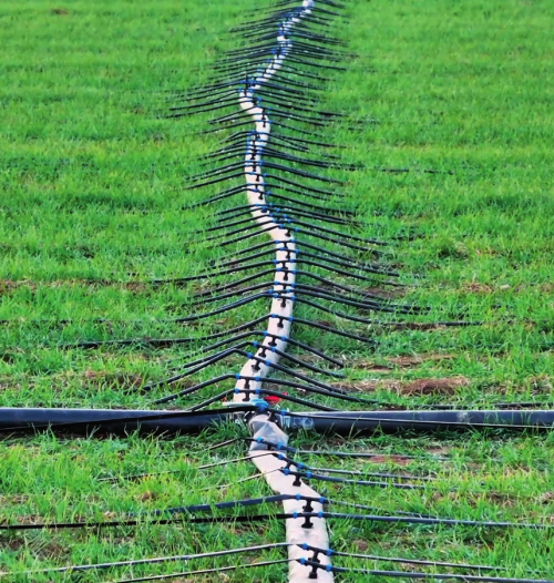 河南省卫辉市高标准农田内的节水滴灌系统在灌溉麦苗(2025年2月12日摄) 刘振坤摄/本刊
