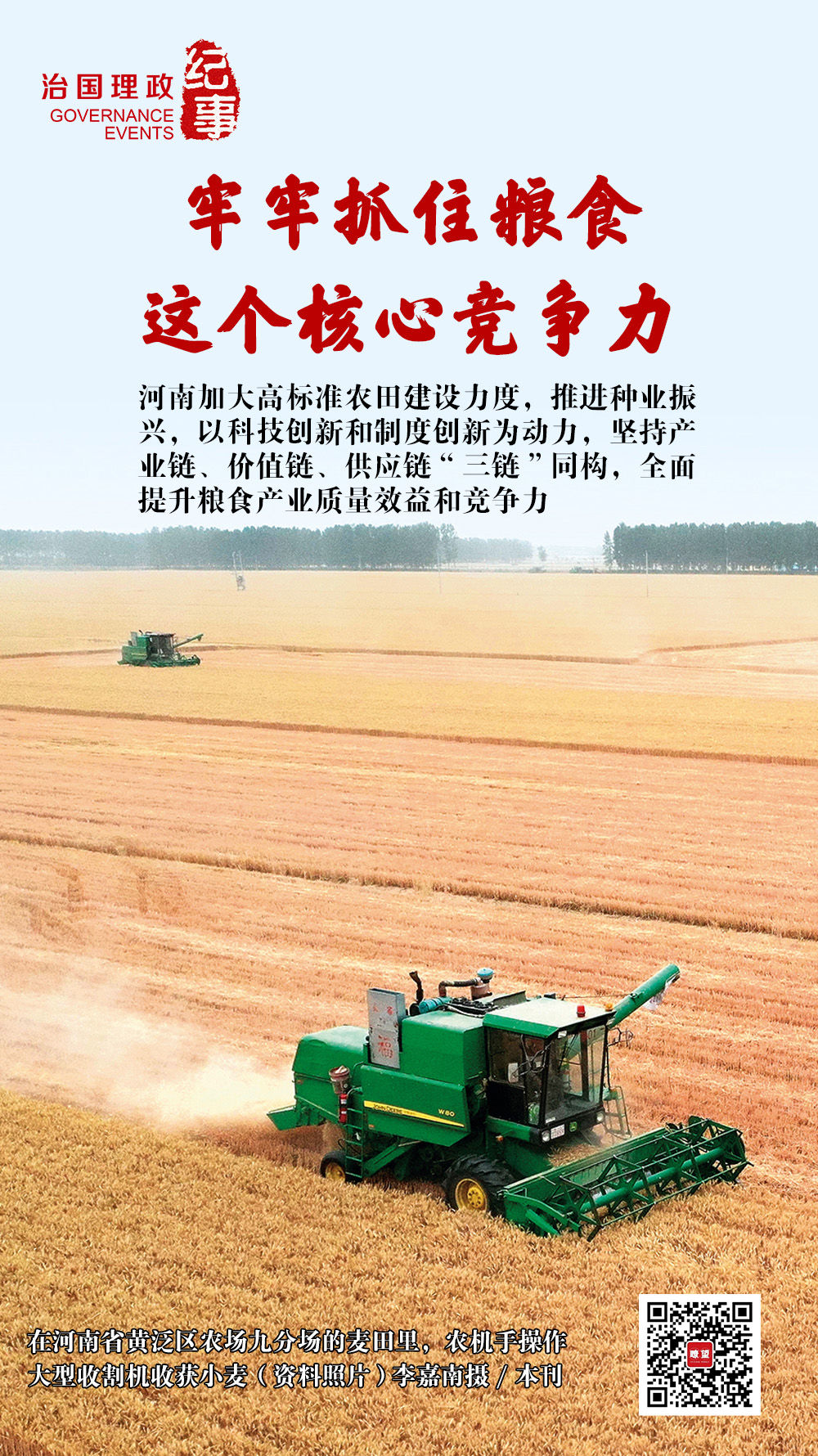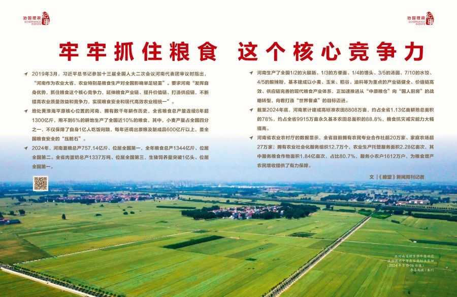 河南通过良田、良种、良法、良机、良制“五良”融合,大面积提升单产,坚持不懈巩固粮食这个核心竞争力。