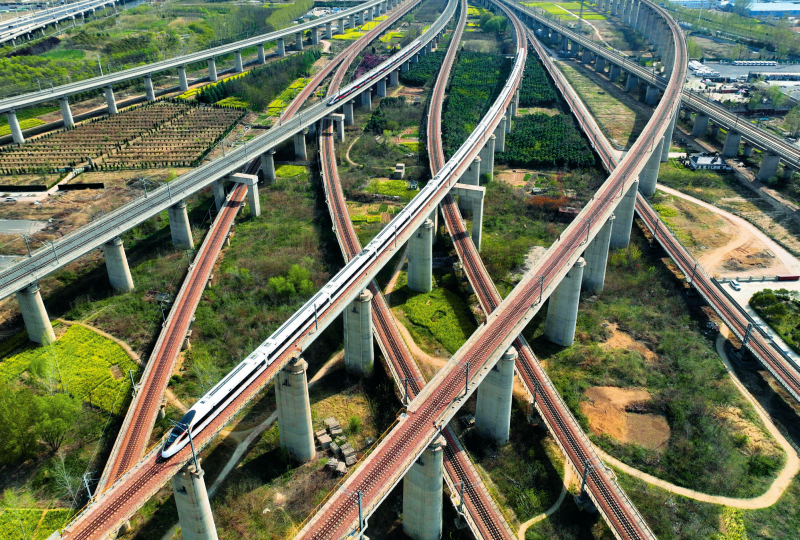 在河南省郑州市拍摄的纵横交错的高铁线路(2025年3月31日摄)李嘉南摄/本刊