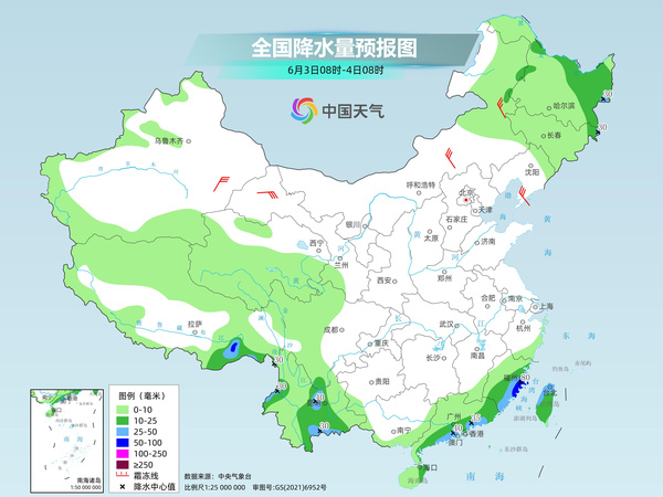 明天,江南中东部和南部、华南大部、云南大部、四川南部、西藏东南部、青海南部以及东北地区北部等地部分地区有中到大雨,其中,福建东北部、广东中部、云南西部和东南部、西藏东南部等地部分地区有暴雨。