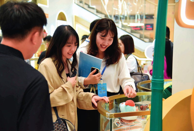 港澳青年在横琴政务服务中心的“澳品荟”横琴展示区浏览澳门创意产品(2024年9月23日摄)洪泽华摄/本刊