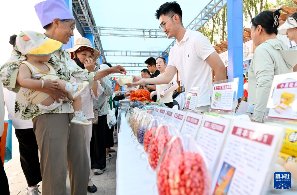 7月23日,居民在活动现场品尝农产品。新华社记者 王鹏 摄