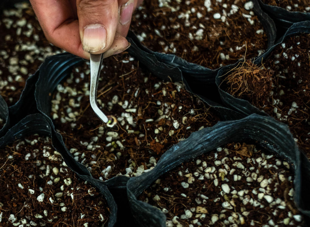 ↑云南锦科花卉工程研究中心里已经发芽的太空种子(2023年4月3日摄)。2022年8月,21个组合、8000多粒鲜花种子结束太空遨游后来到云南锦科花卉工程研究中心有限公司,技术人员在对种子进行消毒、冷藏、催芽、播种等工序后,有12个组合、1200多粒种子顺利开花。航天育种是培育花卉新品种的重要技术,该育种方式可以扩大变异系谱,增加新品种的可能性。新华社记者 胡超 摄