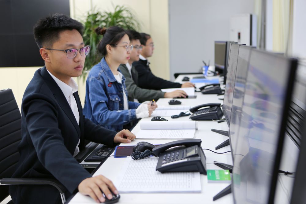↑2023年9月22日,在黑龙江省富锦市气象局,四名青年气象员在整理分析数据、提供农用天气预报信息。新华社记者 石枫 摄