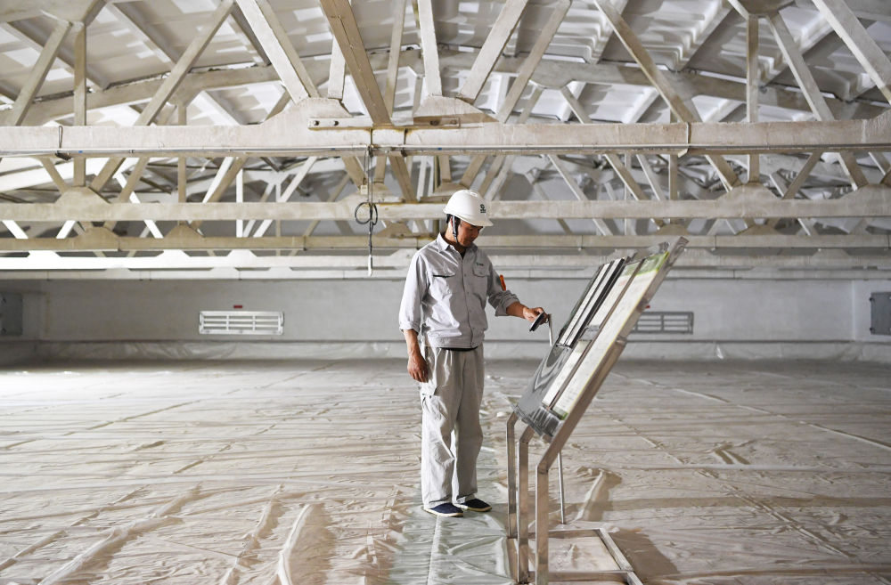 ↑2023年6月6日,在中储粮安阳直属库有限公司滑县道口分公司粮库内,工作人员通过测温设备查看库内温度、湿度等数据。新华社记者 张浩然 摄