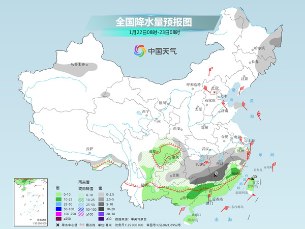 今明两天(1月21日至22日),随着寒潮大举南下,中东部将迎大范围降温,吉林东部、辽宁东部、山西中北部、浙江中南部、福建北部等地的部分地区降温可达12~16℃。同时,南方多地将开启暴雪模式,今夜至明天为雨雪最强时段,雪线最南端将抵达华南北部一带。