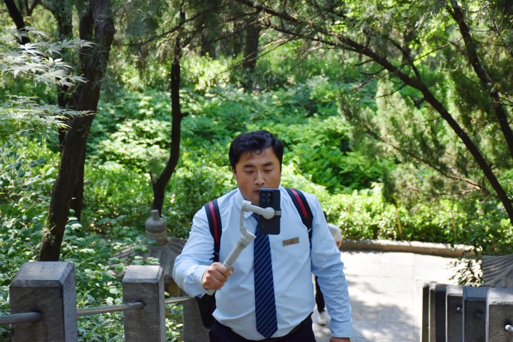 5月7日,马丁在白园录制视频素材。新华社记者高松龄 摄