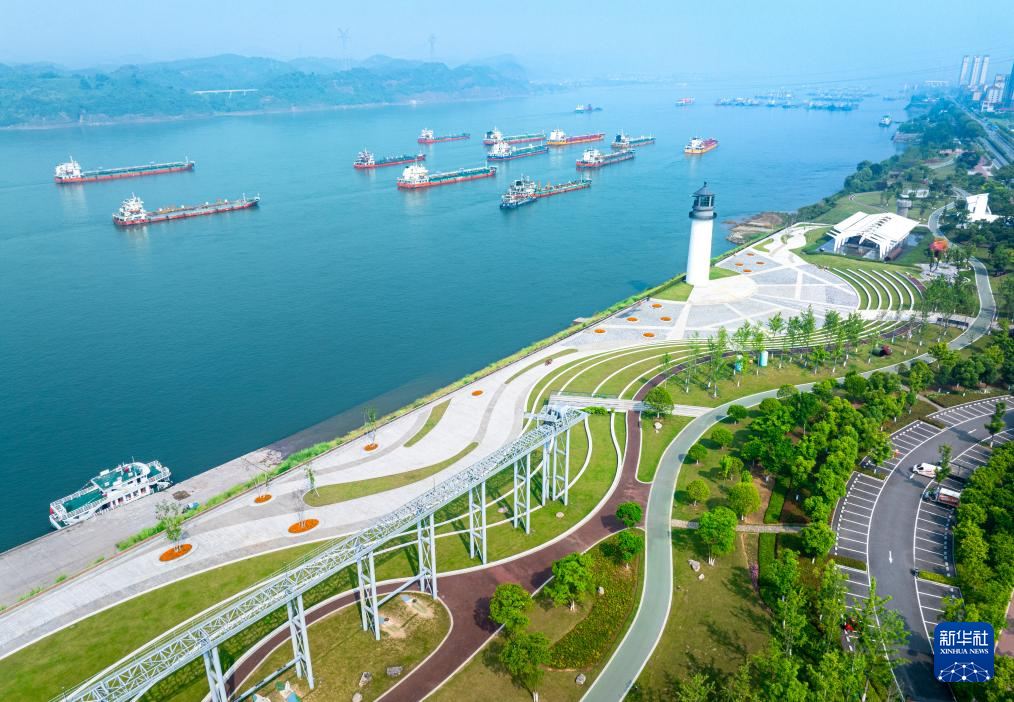 2024年5月24日,市民在湖北宜昌市滨江公园灯塔广场游玩。该广场是在实施岸线复绿等综合措施后,由老旧码头改造而成。
