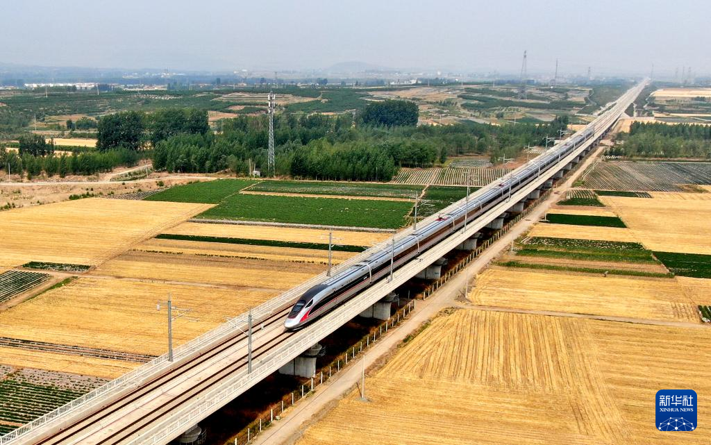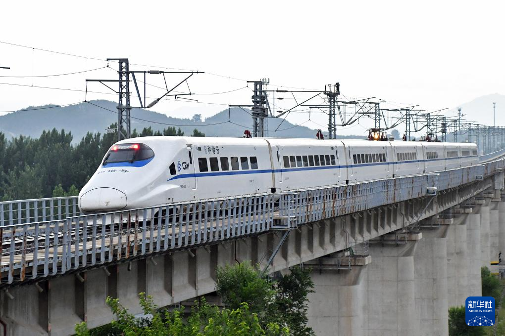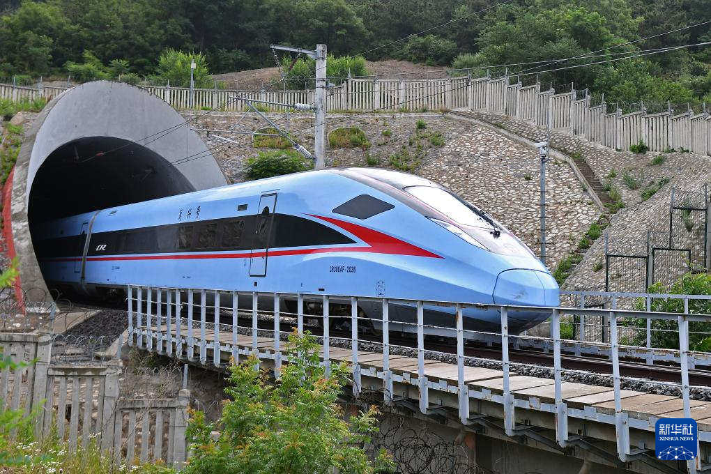 6月14日,一列高铁列车行驶在宝兰高铁甘肃定西境内。