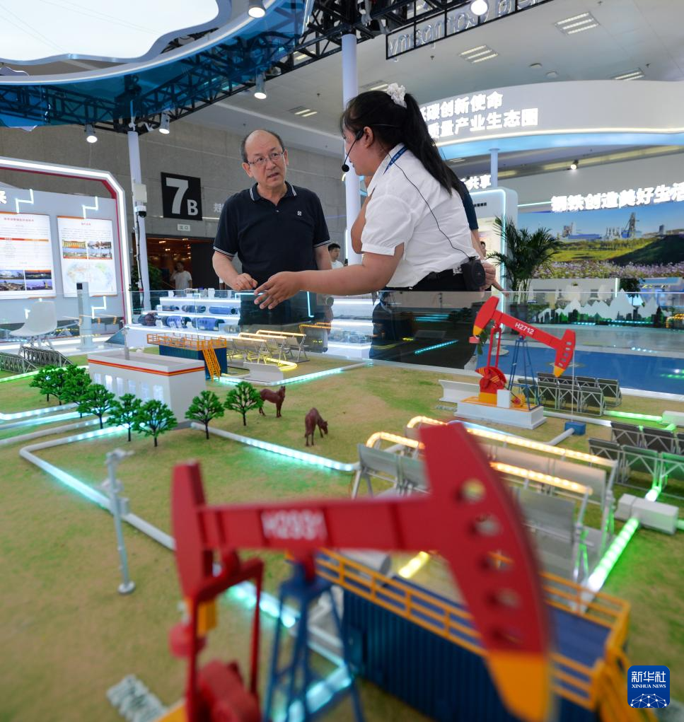6月30日,在第八届中国—亚欧博览会上,中国石油新疆油田公司工作人员为观众讲解。