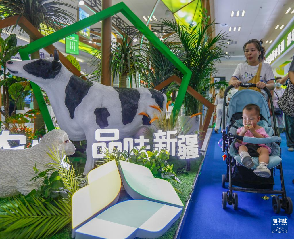 6月30日,在第八届中国——亚欧博览会上,观众走过新疆农牧投集团展台。