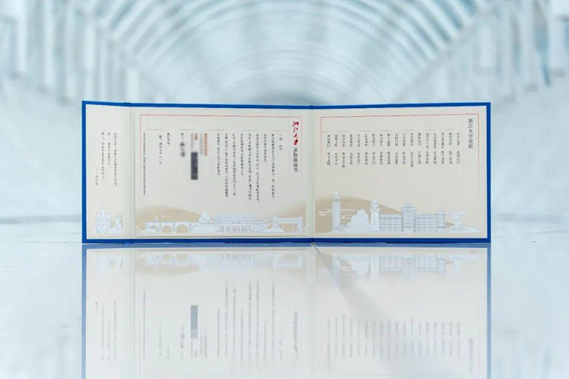 亮点二是“自立式设计 书立人也立”。今年的录取通知书采用了创新的自立式设计,寓意,立住的不只是一份被录取的荣誉,更是一份对浙大学子立身、立业、立言、立德的期待。