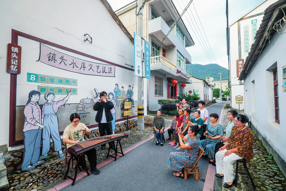 杭州师范大学音乐学院的学生在浙江省建德市三都镇镇头村为村民即兴演出(2024年6月15日摄)。徐昱摄/本刊
