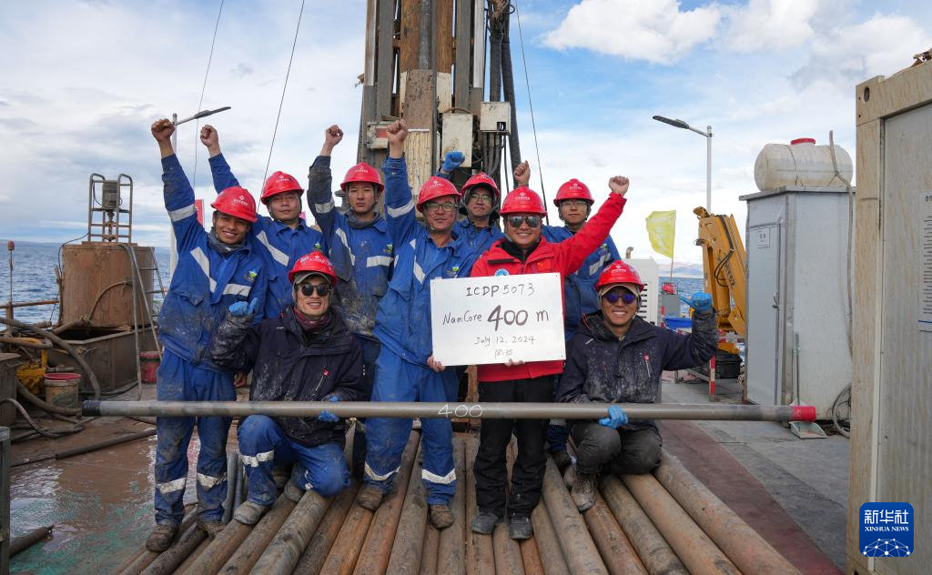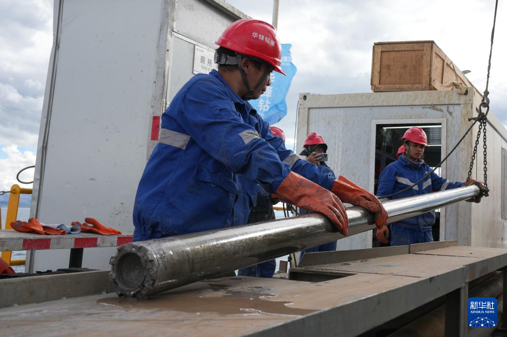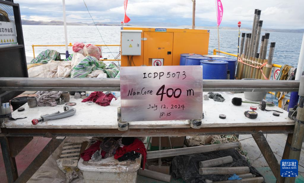 新华社拉萨7月12日电 12日18时35分,在海拔超4700米的纳木错中心湖区,多国联合科考队经过不懈努力,成功在湖底深度402.2米的地方获取了湖泊岩芯。这是我国首次在青藏高原大湖钻探中成功突破400米的深度,打破了2020年纳木错湖泊钻探153.44米的最深钻探纪录,对我国湖泊钻探与古气候的研究具有重要的推动意义。