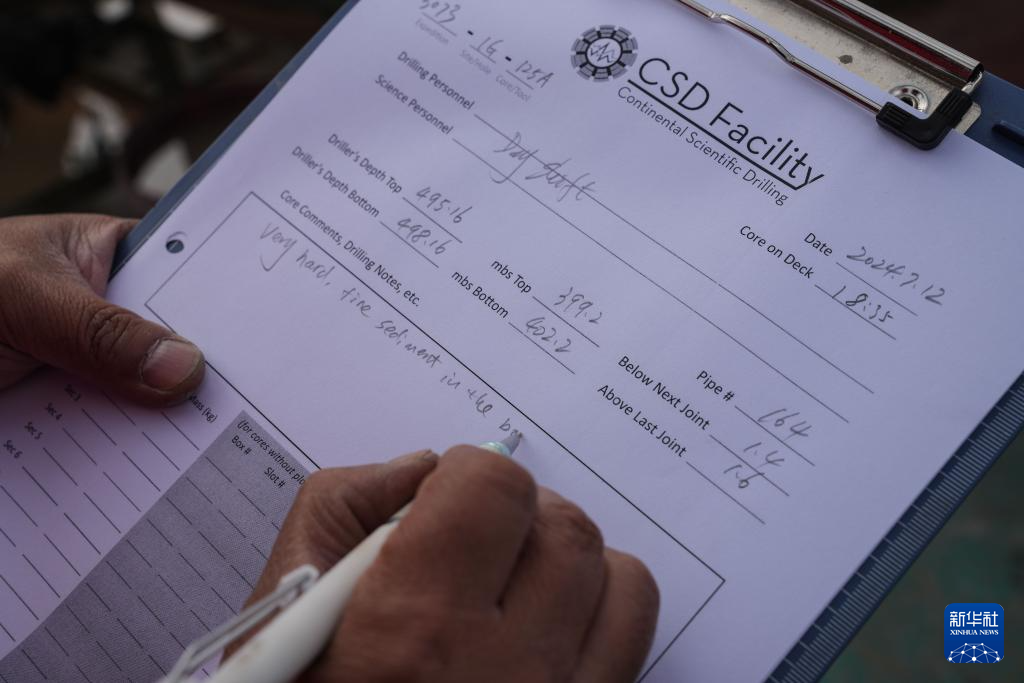 7月12日,科研队员在登记纳木错湖底402.2米深度湖泊岩芯样品信息。新华社记者 晋美多吉 摄