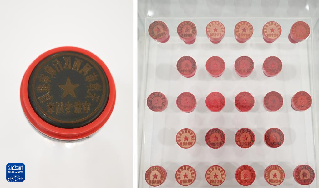 拼版照片:2015年,天津市河西区将26个部门的行政审批印章收回,整合成左图一枚审批用印章,实现“一枚印章管审批”(7月16日摄)。