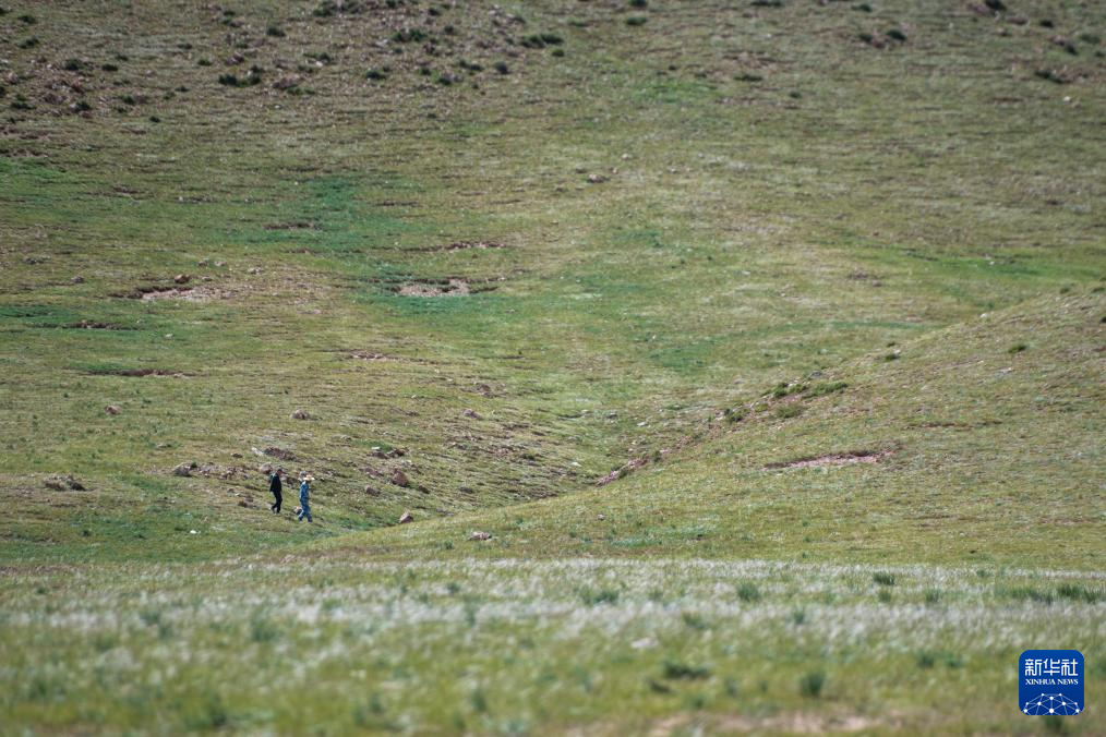 7月22日,在查旦湿地,科考队员查看植被情况。