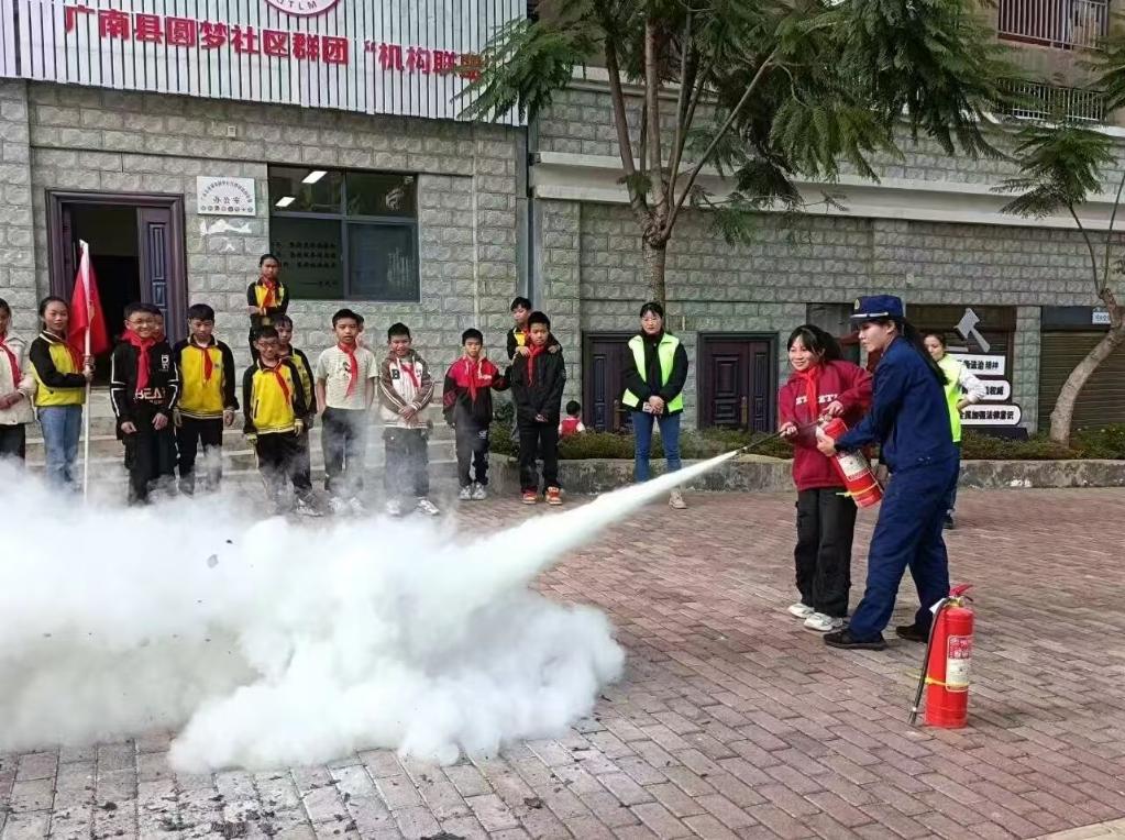 广南县莲城镇圆梦社区“少年儿童之家”开展消防演练活动。(刘盈秀 摄)